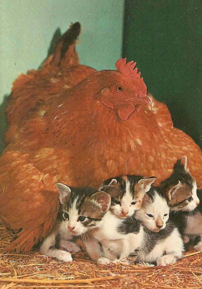 母雞看到可憐的小動物沒有媽媽的陪伴,主動變成牠們的媽媽。現在這些小寶貝們已經完全離不開「母雞媽媽」,看到牠們一家人和睦相處的樣子,真的太溫馨了!趕快與大家一起分享這份偉大的母愛吧!
