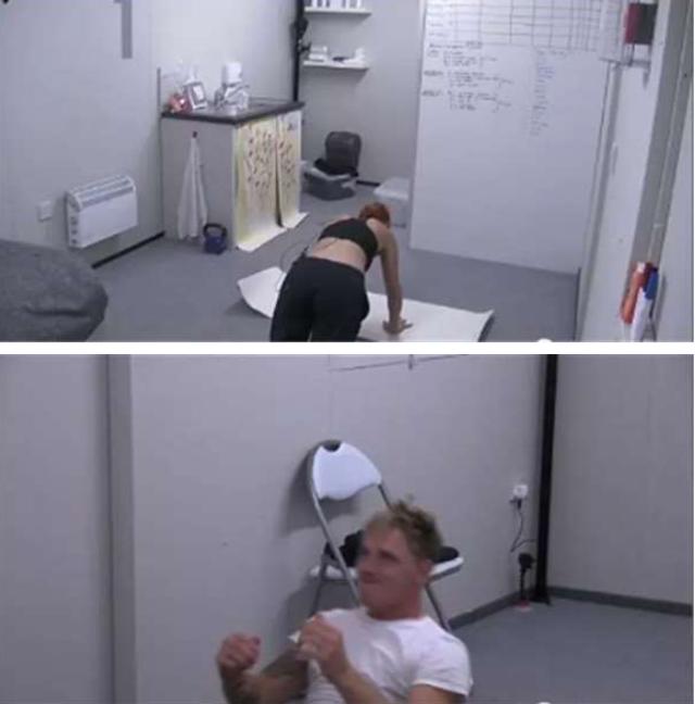 ▼三人進入房間時可以帶三樣私人物品,Lloyd帶了一張女朋友的照片,帶了可以維持到實驗結束的茶包,還有一副撲克牌;Lucie帶了畫畫用具、筆和運動用的啞鈴;Charmayne帶了一盒黏土、丈夫寫給她的鼓勵信,還有一瓶保濕潤膚乳。