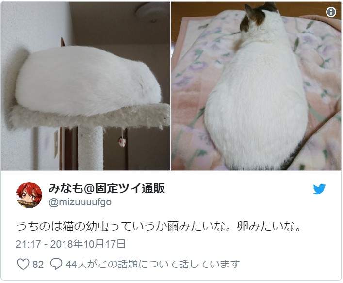 你家有「貓貓蟲」嗎?最近日本推特上出現了大量的「貓咪幼蟲」。明明是貓咪,卻呈現出毛蟲一樣的狀態,讓人非常迷惑。貓咪幼蟲已經在日本各地出現,甚至連狗狗、兔子等寵物也出現了毛蟲化的現象。總體來看,這應該是一種向萌的方向的終極進化吧!