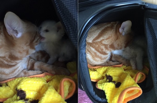 家裡新來白色小奶喵 橘貓大哥沒吃醋「反而抱緊緊」:我有妹妹啦~