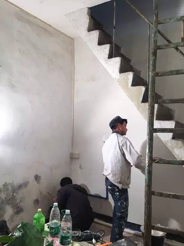 ▼改造工程第一步:粉刷牆面。