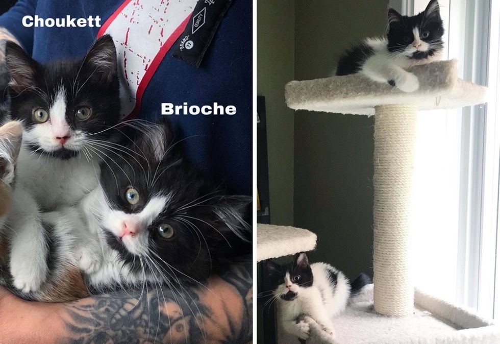 2022年02月18日今年早些時候,加拿大蒙特婁(Montreal)的動物救援組織「Chatons Orphelins Montréal」接獲通報,稱一間農場裡有4隻小奶貓需要幫助。救援人員很快趕到農場,將那4隻不到5週大的小奶貓帶去看獸醫。其中2隻小貓身上的毛皮黑白相間,長得很相似,牠們還緊緊挨在一起,看起來很親密。