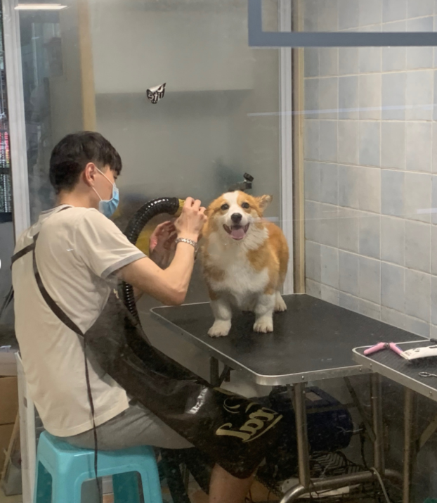 2022年02月25日狗狗也喜歡帥哥~大陸有一位網友楊小姐,她養了一隻可愛的柯基犬「小蘭」。小蘭性格活潑,很討人喜歡,但牠很不喜歡洗澡。每次馬麻帶牠去去寵物美容院洗澡,都會被員工表示狗狗太頑皮。最近馬麻又帶小蘭去洗澡,迎接他們的是一位年輕帥哥店員。沒想到小蘭看到對方後,竟變得超乖巧。
