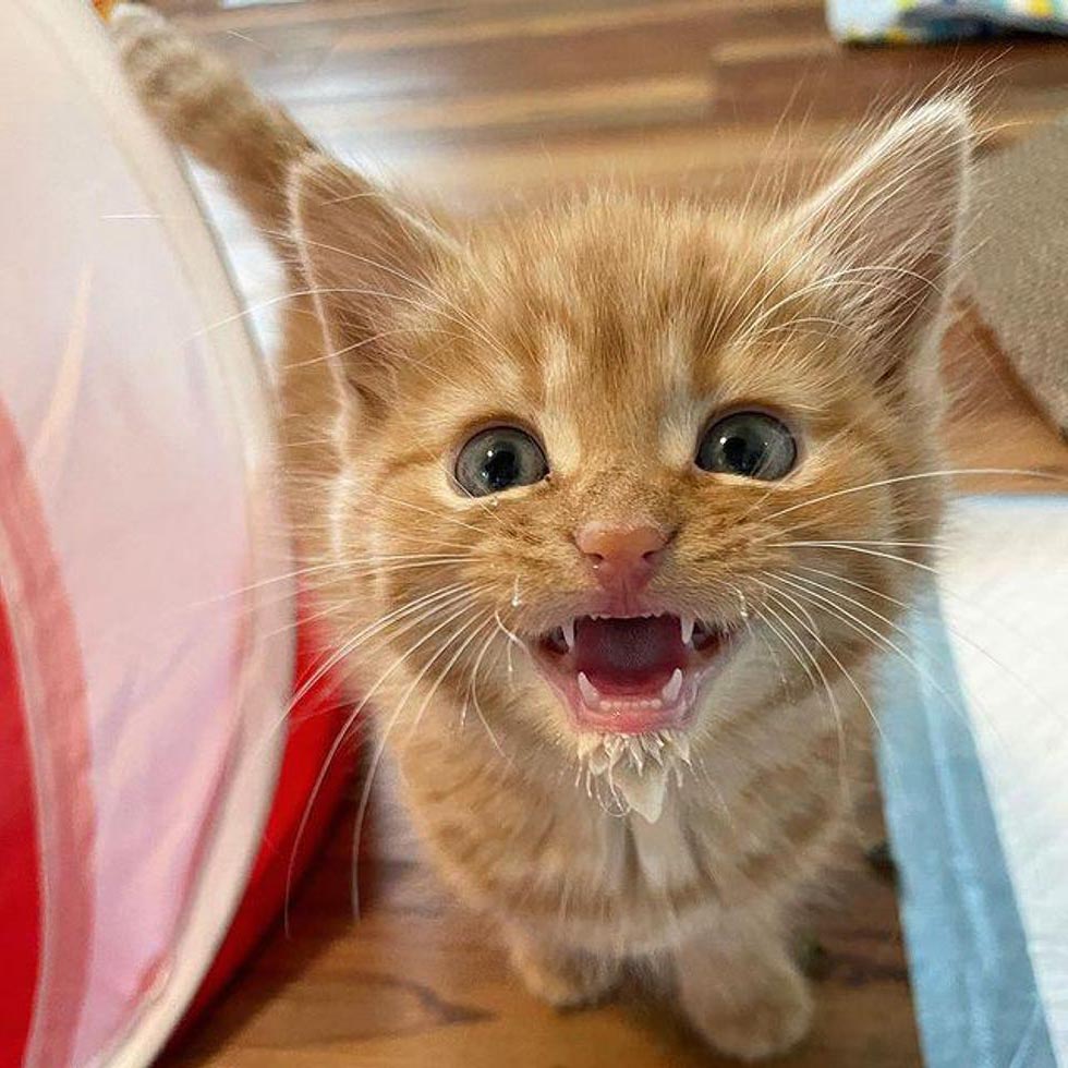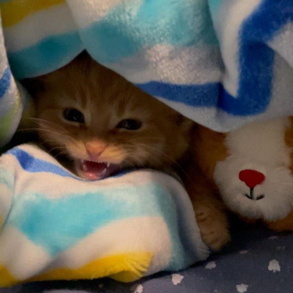 小橘貓剛到新家躲毯子「惡貓咆哮」! 數天後「露粉紅肉球」賣萌本色:給你看❤️