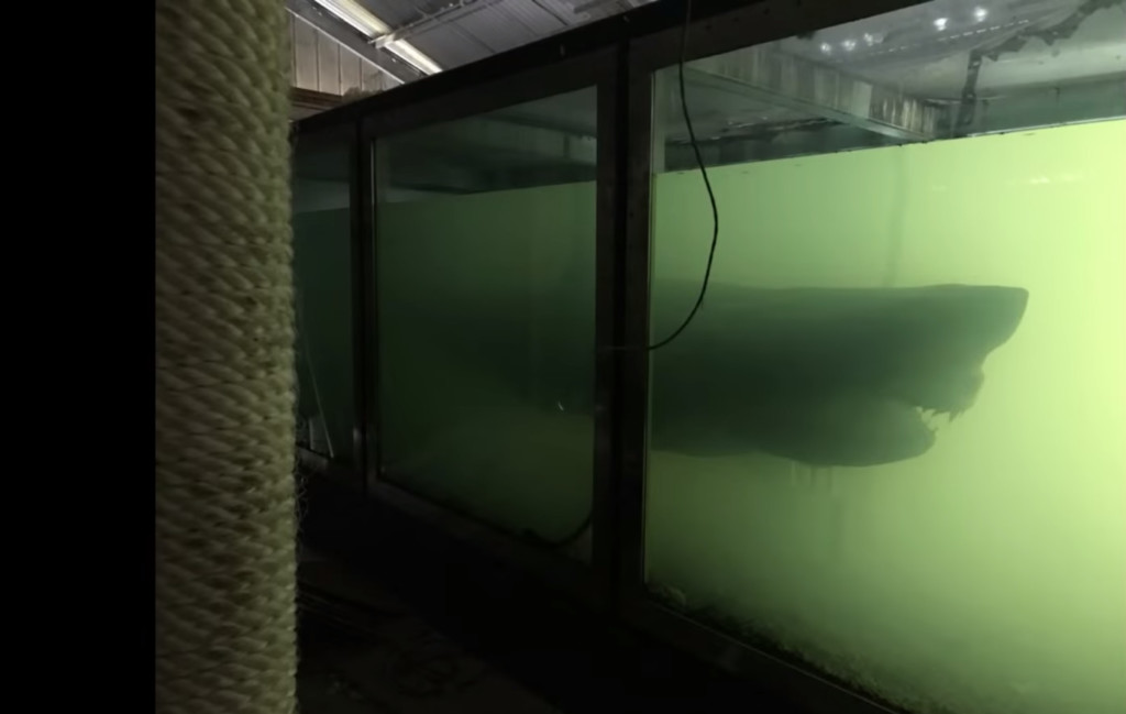 ▼在廢棄的倉庫中,一個神秘的水箱中竟然有一隻「鯊魚」!