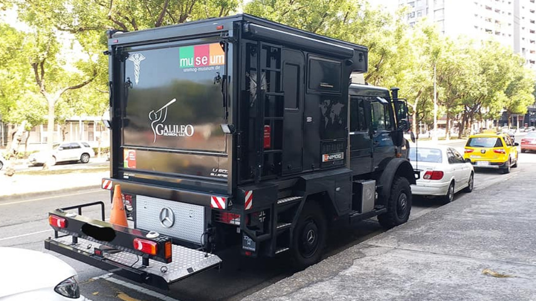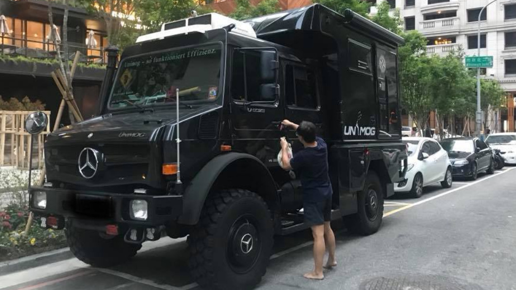 ▼據報道,該車款是賓士旗下的Unimog車系,擁有強大的越野能力。《年代新聞》曾做過相關報導,知情人士透露,該車款要價4千萬,僅驗車、掛牌就要花上百萬,而且露營車廂的配備、內部裝潢也要百萬。目前這是全台唯一一輛,車主是台中地方牙醫診所的一名牙醫師。