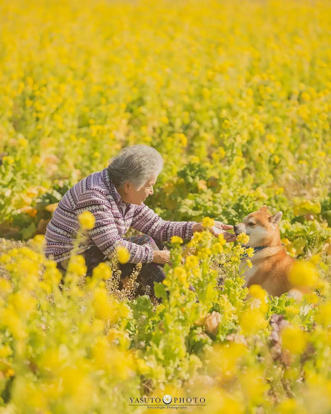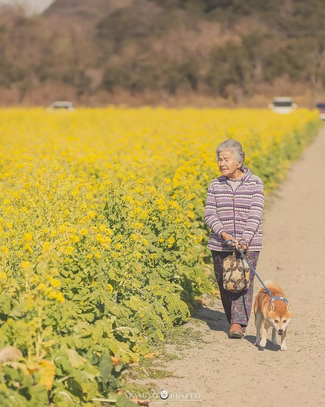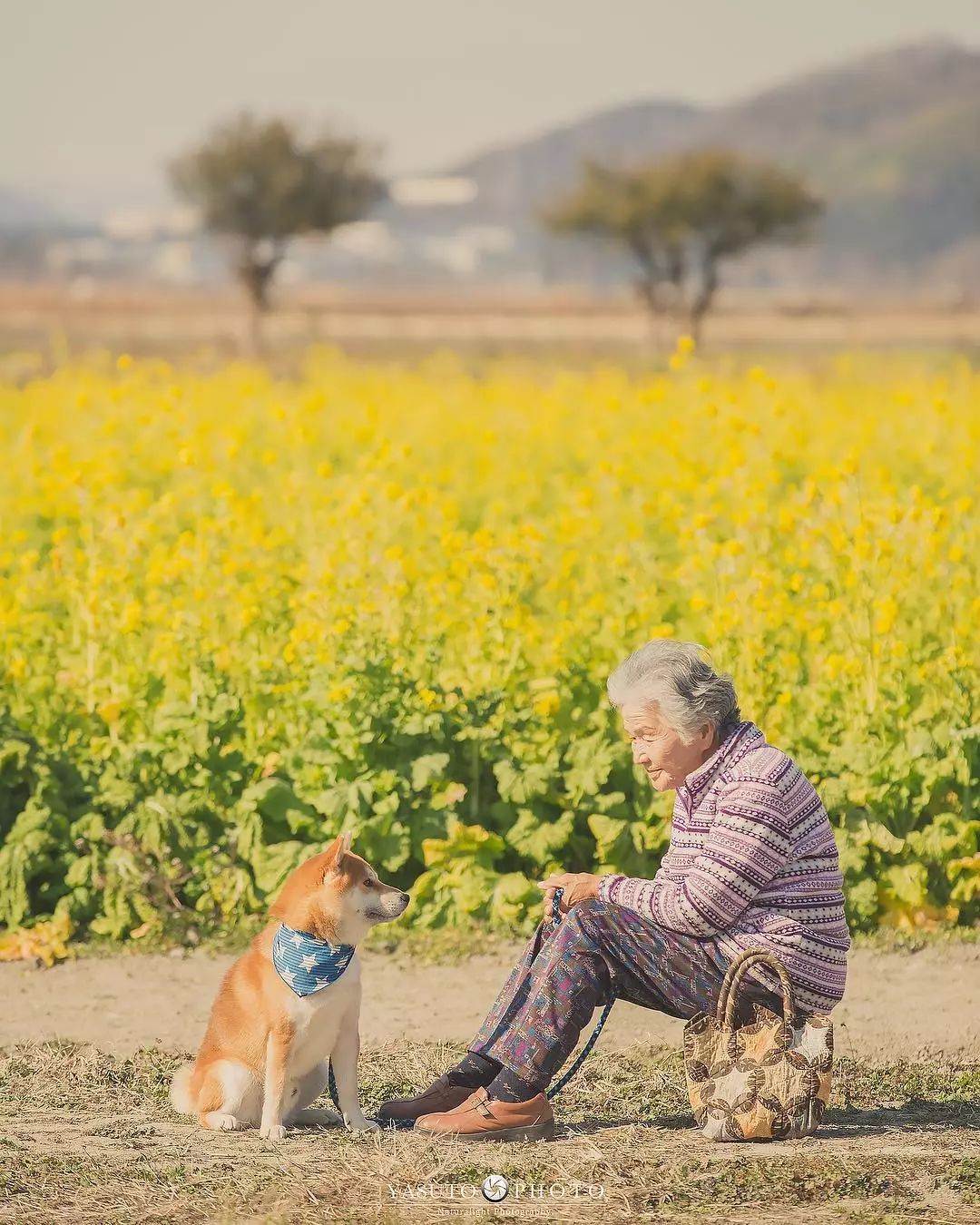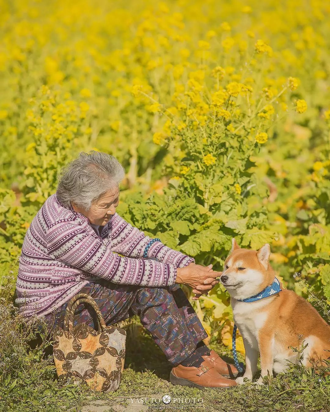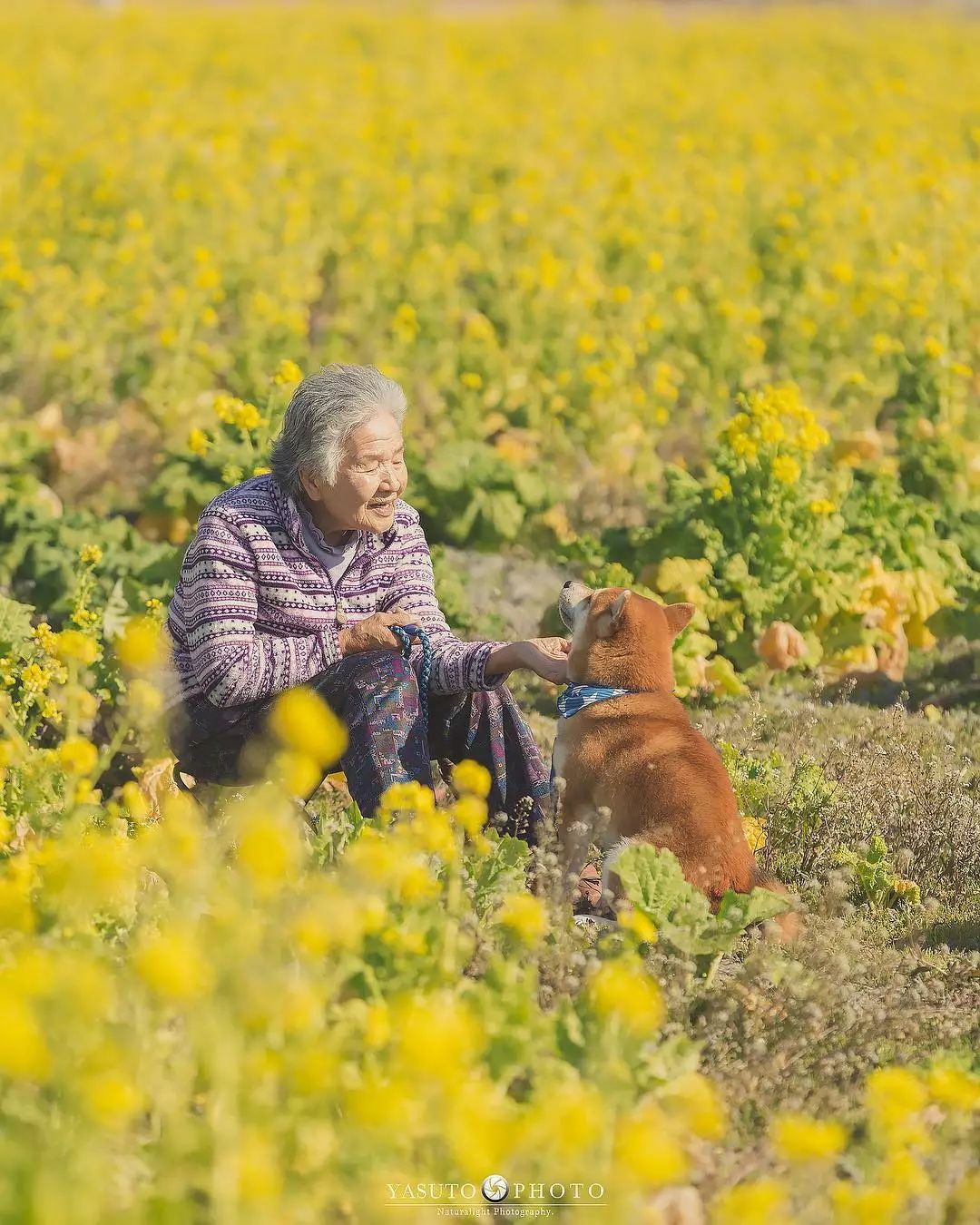 ▼和婆婆一起拍照的還有阿福。牠陪著婆婆走過向日葵花田、走過綠意盎然的鄉間小路、走過金黃的油菜花海…