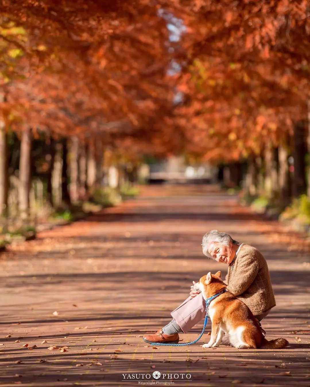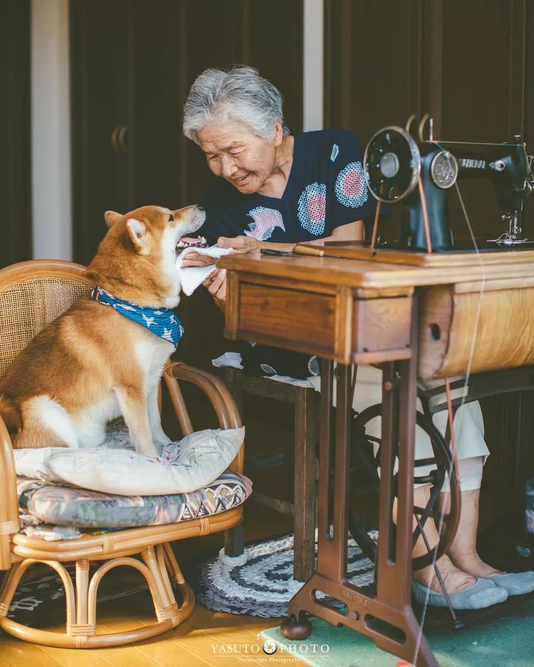 ▼這位老人是YASUTO的婆婆,已經86歲了。她滿頭白髮,臉上滿是皺紋,卻總是掛著溫柔的笑意,看起來活力滿滿。能讓婆婆笑得這麼開心的,就是那隻叫阿福的可愛柴柴。