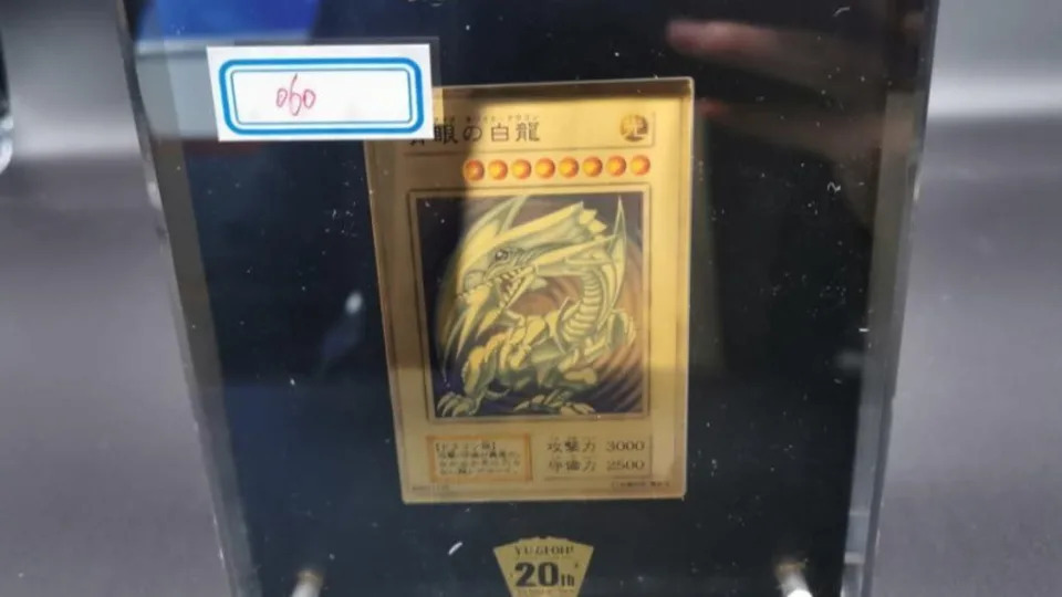 2022年03月01日去年6月,大陸曾法拍一張《遊戲王》紀念卡牌「黃金青眼白龍」。這張卡牌是2019年發售的20週年紀念版,整張卡以「24K金」製作,全球限量只有500張,最後競價飆漲到87,326,098人民幣(約台幣3.8億元)。最近又有一張「黃金青眼白龍」卡牌遭法拍了~