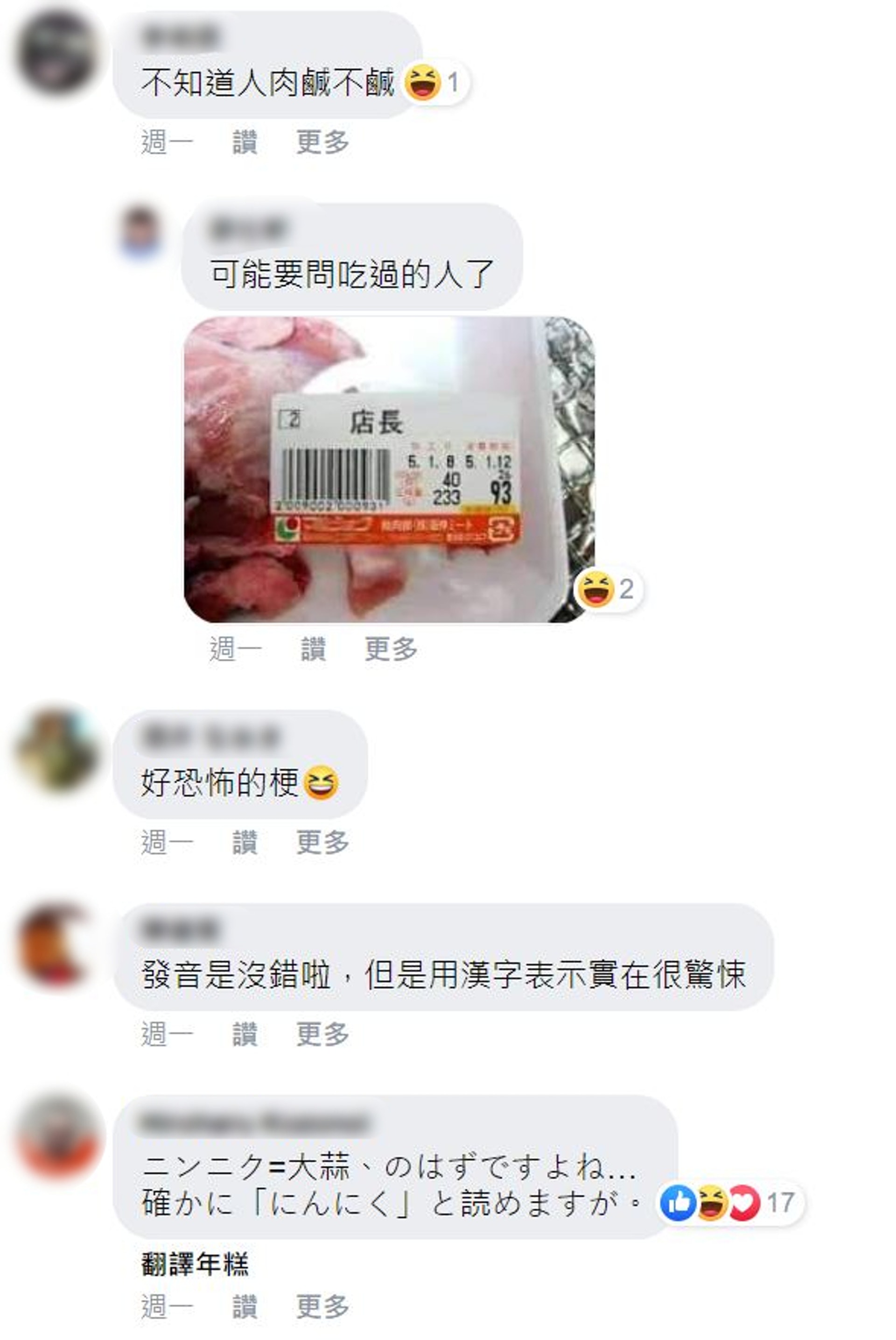▼日本網友看到後紛紛笑說:「吸血鬼誤會大蒜是『人肉』就會很開心吃了它,絕佳的消滅戰術」、「愛媛縣的『人肉』才是我吃過最好吃的」、「有傳聞說青森縣縣民消失,該不會是因為這樣吧」、「是用青森縣縣民產的嗎」。一些台灣網友看到後也笑說:「真不知道店家是不是故意引起顧客興趣的」、「青森縣的文化真特別」、「不知道人肉鹹不鹹」、「發音是沒錯啦,但是用漢字表示實在很驚悚」。
