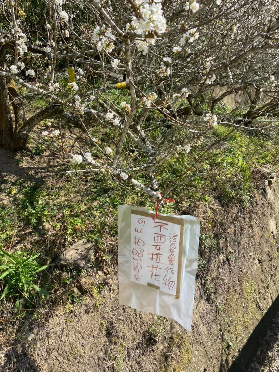 ▼一些遊客賞花時會拉扯樹枝來拍照,導致脆弱的櫻花受損,還沒開花結果就掉光光。「最怕還有無知的人拉花拍照,還沒結果的花都掉光,手可以不用那麼X嗎?」更誇張的是,很多遊客會亂丟垃圾。她家附近、路邊都被丟了很多垃圾。