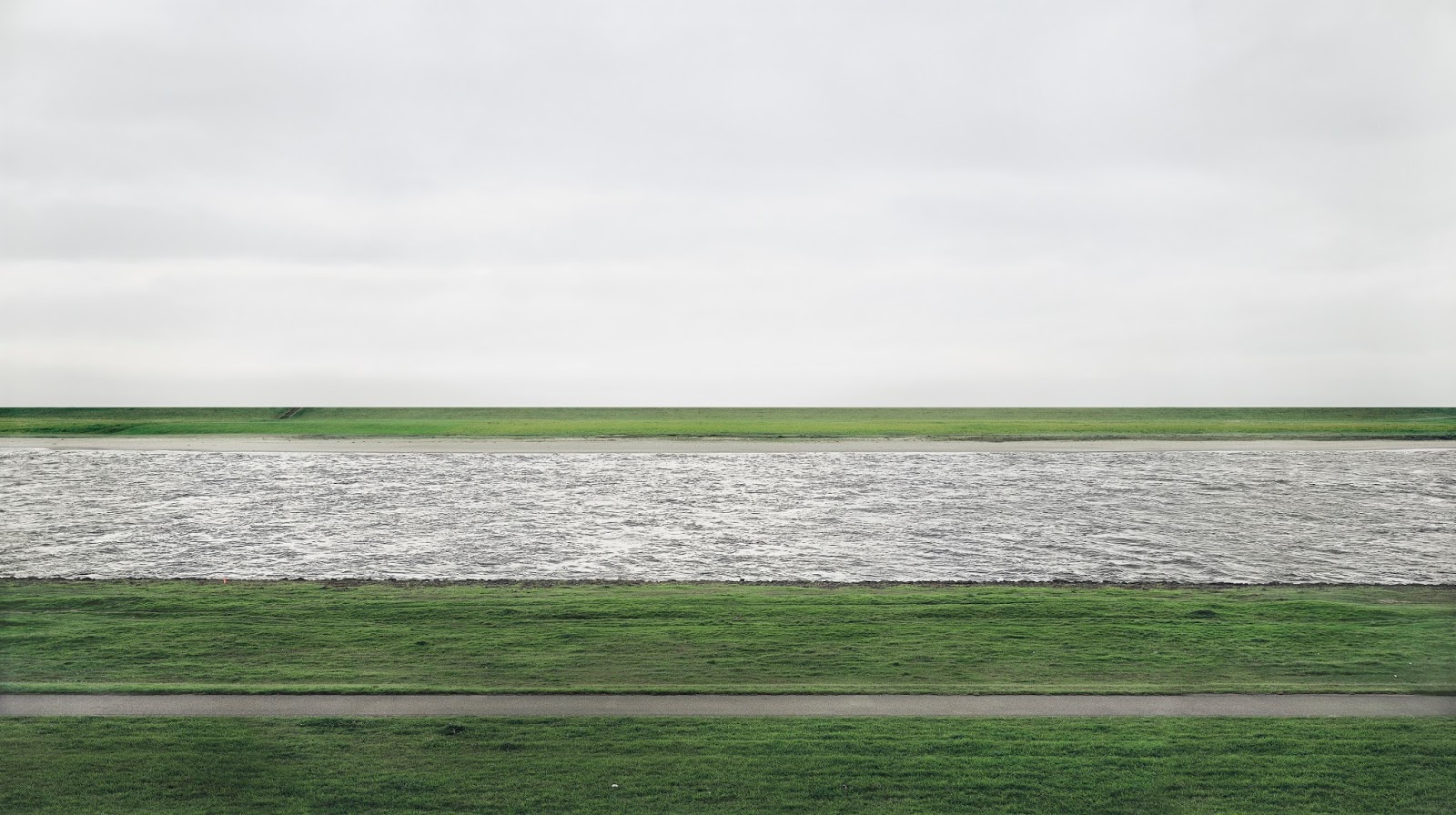 當時Andreas在萊茵河邊拍攝了一組6張照片,《萊茵河2號》構圖簡單,照片中只能看到一條貫穿畫面的河流,剩下的就是一望無際的草地,還有空曠的天空。其實這張照片中,原本還有工廠、行人等元素,後來Andreas以數碼的方式除掉,才變成了現在這副模樣。
