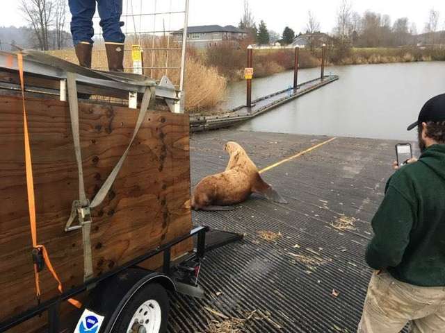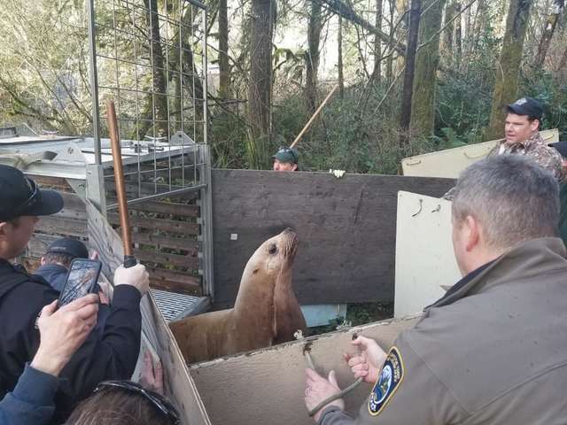 ▼海獅被放進車裡時非常緊張,還不停吼叫。但被送到安全的地方後牠終於不再困惑,開開心心回到了河裡。