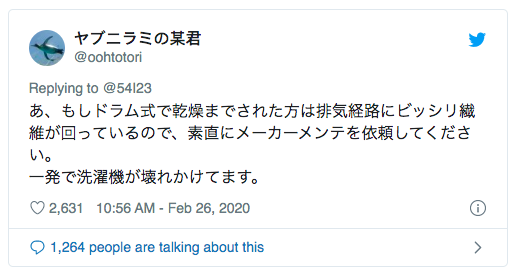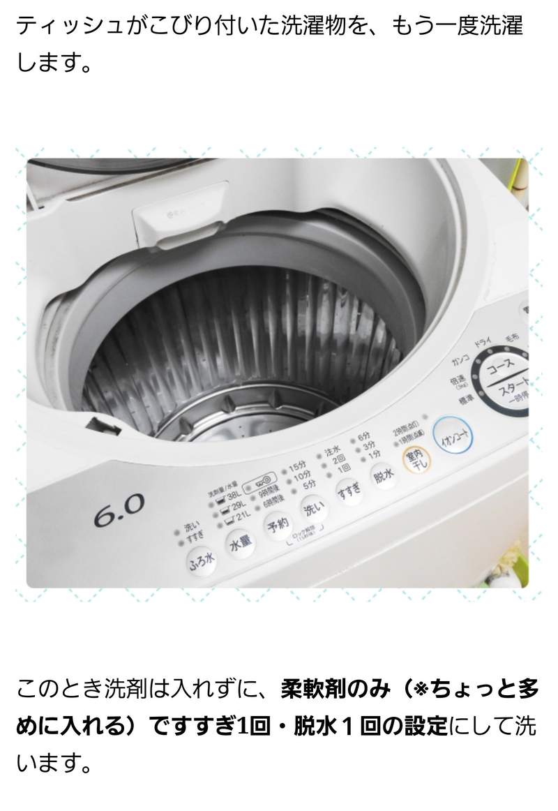 ティッシュまみれの惨劇に見舞われた洗濯物は『柔軟剤のみ、すすぎ1回、脱水1回の設定で洗い直すと綺麗になる』という事を知っていま凄絶に感動してるし、最早ティッシュなど私の敵では無いぞ!恐るるに足らず!さあ!いくらでも放り込むがいい!ってちょっと調子乗ってる。ありがとう柔軟剤…救世主… pic.twitter.com/C74jmFr9LP