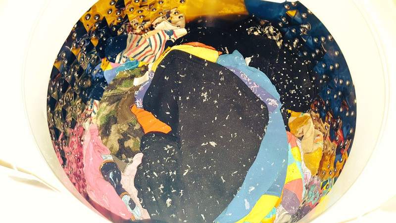 ▼這位推主用的搶救方法很簡單:「沾滿衛生紙屑的衣服再洗一次就可以拯救。這時不需放洗衣精,只要放(※較多的)柔軟精設定清水洗1次、脫水1次就OK了。」