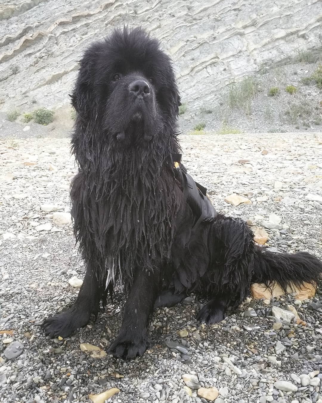 ▼紐芬蘭犬很愛玩水、很愛游泳。