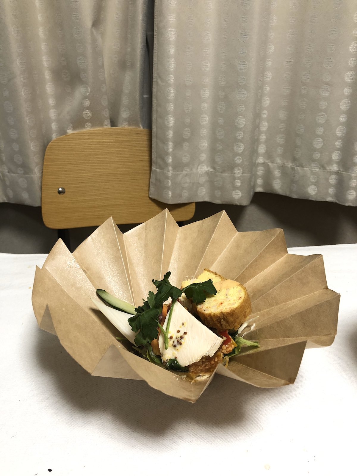 料理のテイクアウトの器が展開構造だった。タッパー⇄平皿。折りぐせで残ったひだで見た目にもいいし、ある程度剛性も確保されてて良い感じ。 pic.twitter.com/kUSSDK3wYe