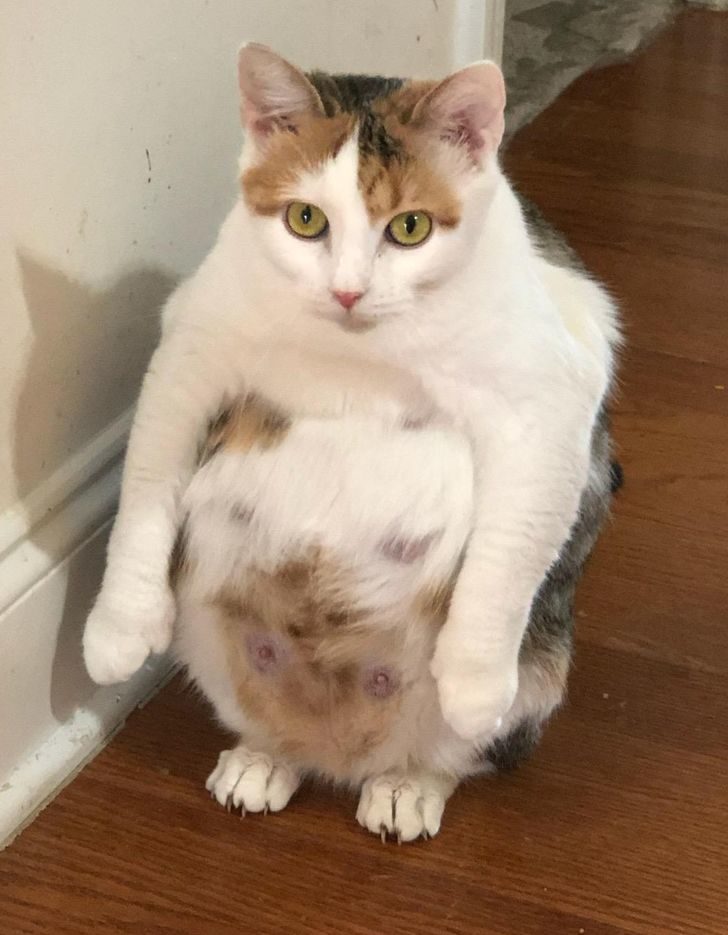 ▼朋友家的貓咪懷孕後經常這樣坐。