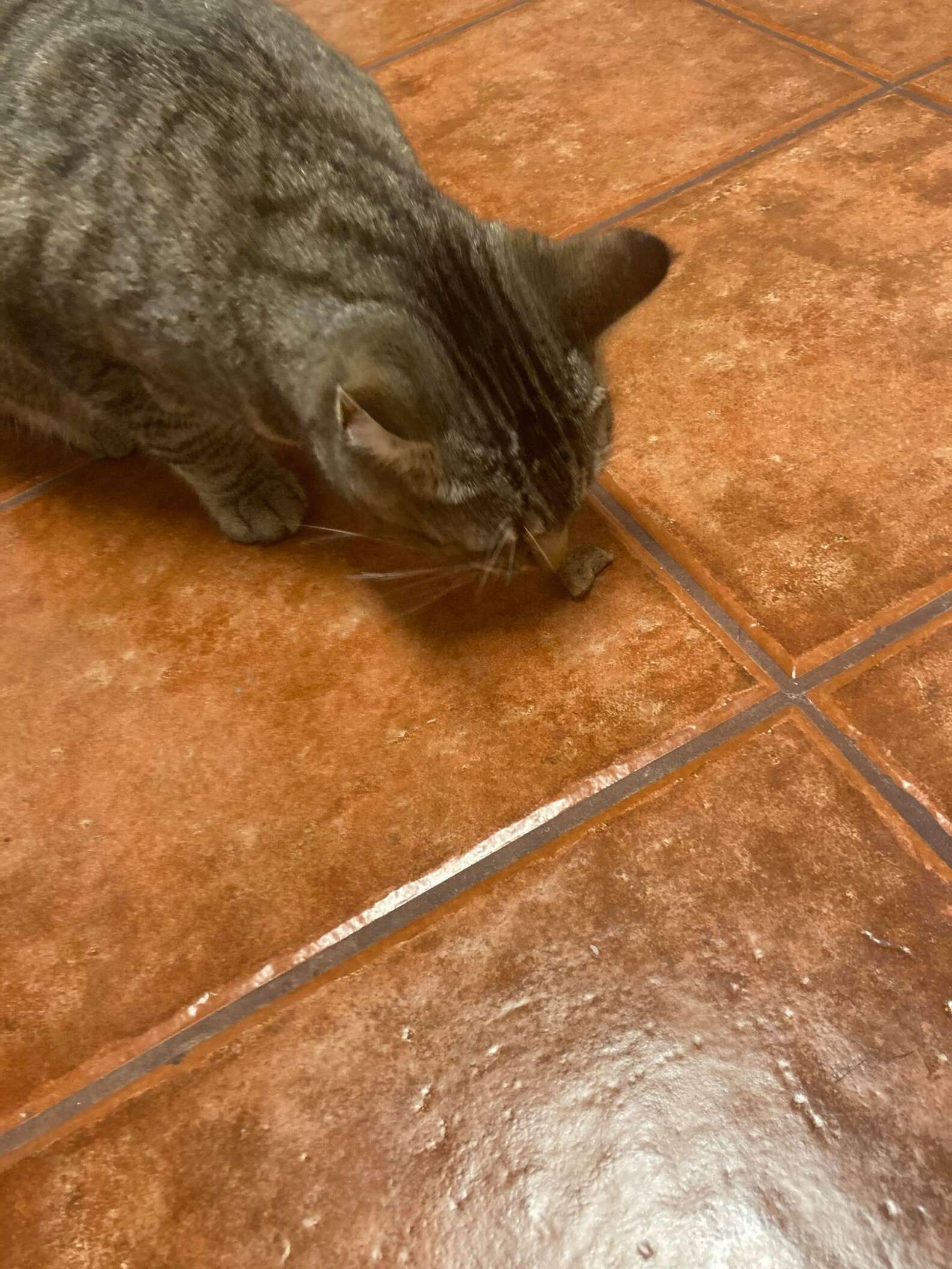 這塊磁磚有魔法! 主人1年前「雞肉不小心掉地上」 吃貨喵「每天檢查好幾遍」:今天有沒有變出食物呢?