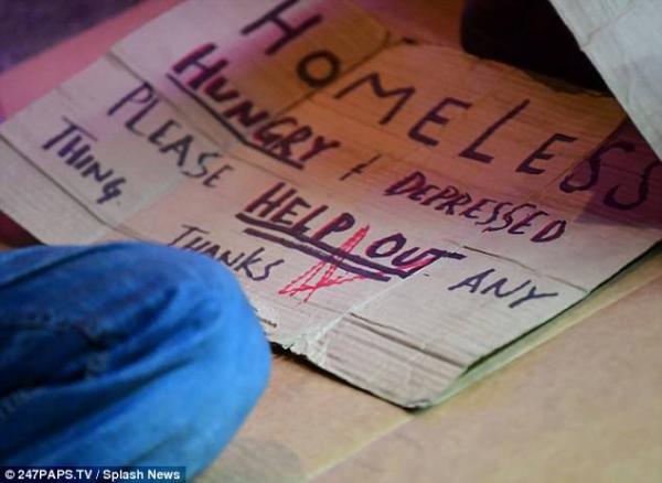 ▼2018年時他去紐約取景拍攝,趁拍片的空檔跟一名街友聊了起來。他看到紙板上寫著「無家可歸、又餓又累,拜託資助我任何東西,謝謝!」就用紅筆寫上了自己的簽名。