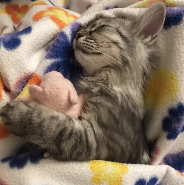 ▼牠要抱著豬豬玩偶才能好好睡。