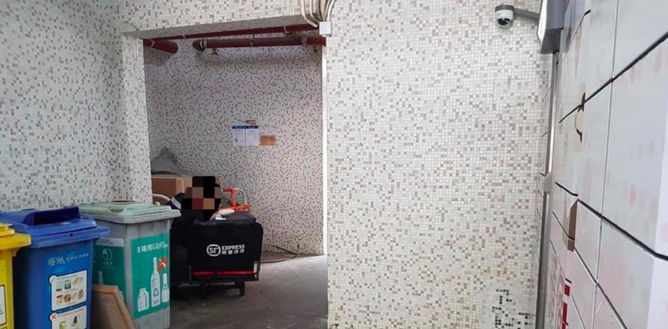 ▼3月15日,有網友在臉書專頁「小西灣富景花園居民聯絡組」發文,稱在富景花園第9座地下行人通道,看到一名順豐送貨員坐在通道旁邊的一張長櫈上,把手推車當飯桌,並脫下口罩用餐。原po認為,送貨員在街頭進食影響衛生,自己已向物業管理公司及保安公司投訴。