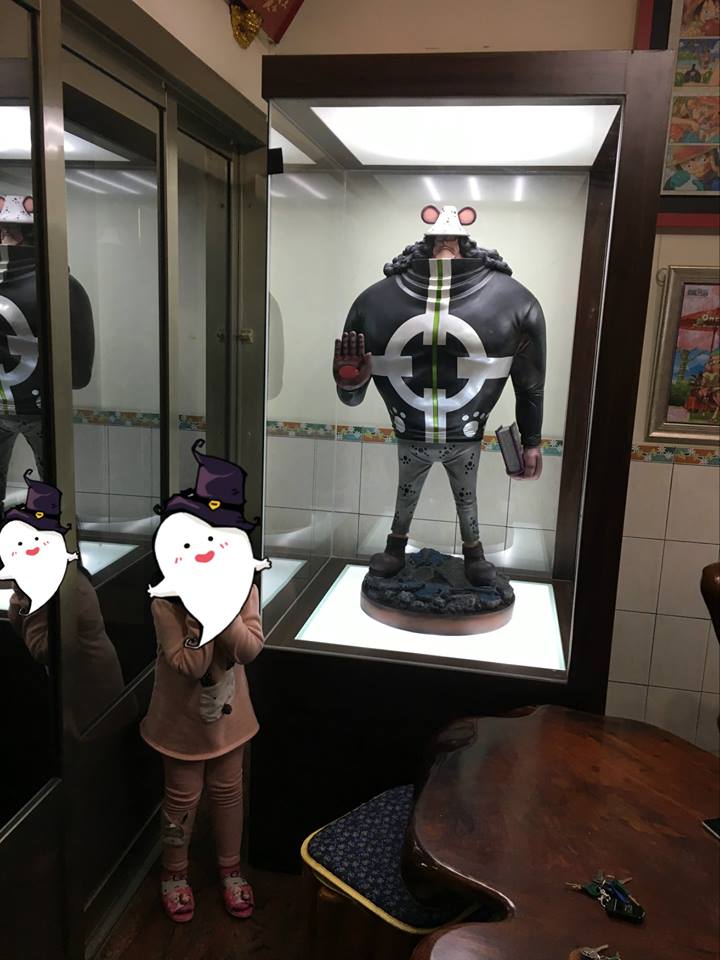 ▼表示老公只要看到喜歡的就會買回家收藏,家裡的獨立櫃也不斷增加到霸佔了所有空間。其中最令人眼界大開的就是一個超大的獨立櫃,擺了一個約136公分高的動漫《航海王》人物「大熊」公仔!