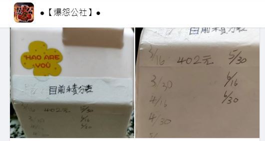 原po沒有想到,從那之後小孩的成績越來越好,原來每次考試都在29到55分之間,現在每次考試都不低於90分。他大傻眼,小孩還製作了一張「積分表」,記錄請款的時間和金額,「3月16日他已經自動寫好黏在存錢筒上結帳一次,多兩元是幫我做家事或者是幫我捶背+morning call的服務費,我也不太清楚,1人1元共計加總400+02=402元」。