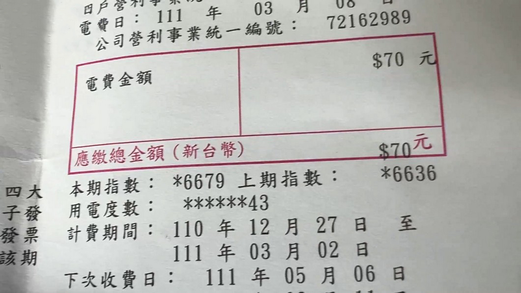 2022年03月23日日前台南一名吳姓男子將自家的電費單po上網,1、2月加起來總共70元!網友們看到後都覺得非常驚奇,將他封為「省電神人等級」。有人質疑是空屋,吳先生解釋說,他住的是三合院,本身是大貨車司機,自己也踐行了不少實用的「超省秘訣」~