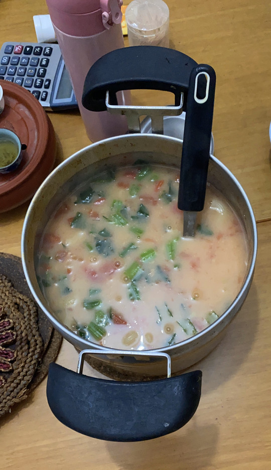 ▼蔬菜炒蛋的湯汁未免太多啦。