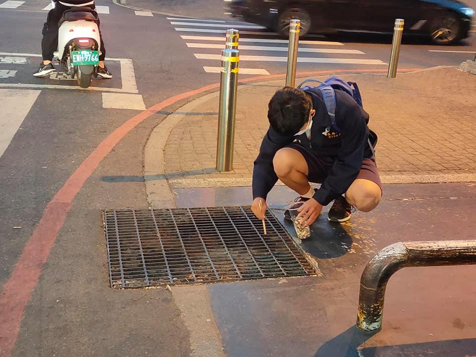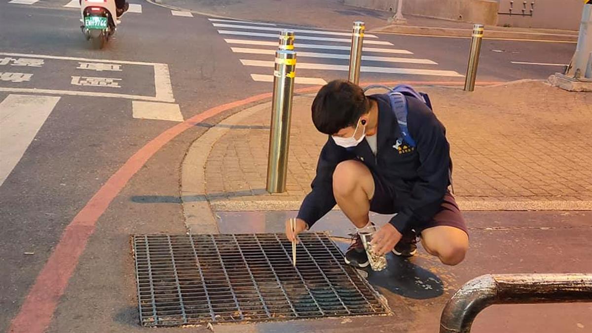 南一中弟蹲地撿菸蒂「已裝半滿」 退休警拍下感動:國家棟樑!