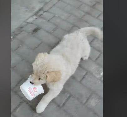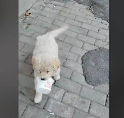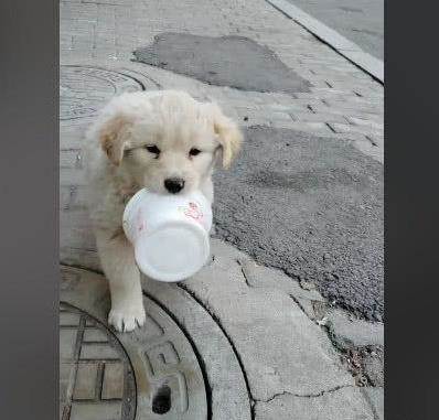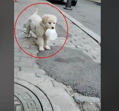 沒人照顧牠…小浪汪「叼撿來的碗」 自己四處討食超乖巧