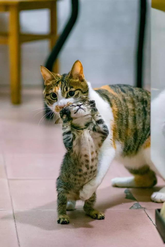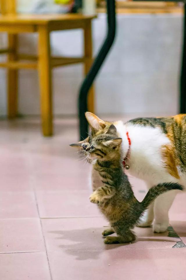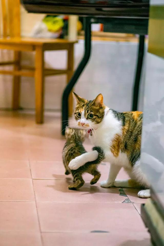 貓媽媽對陌生人很好奇,但牠非常謹慎,不會輕易靠近。小奶貓沒有那麼多顧慮,所以貓媽媽才那麼保護牠。貓咪之間的母子情讓人覺得很暖心呀。
