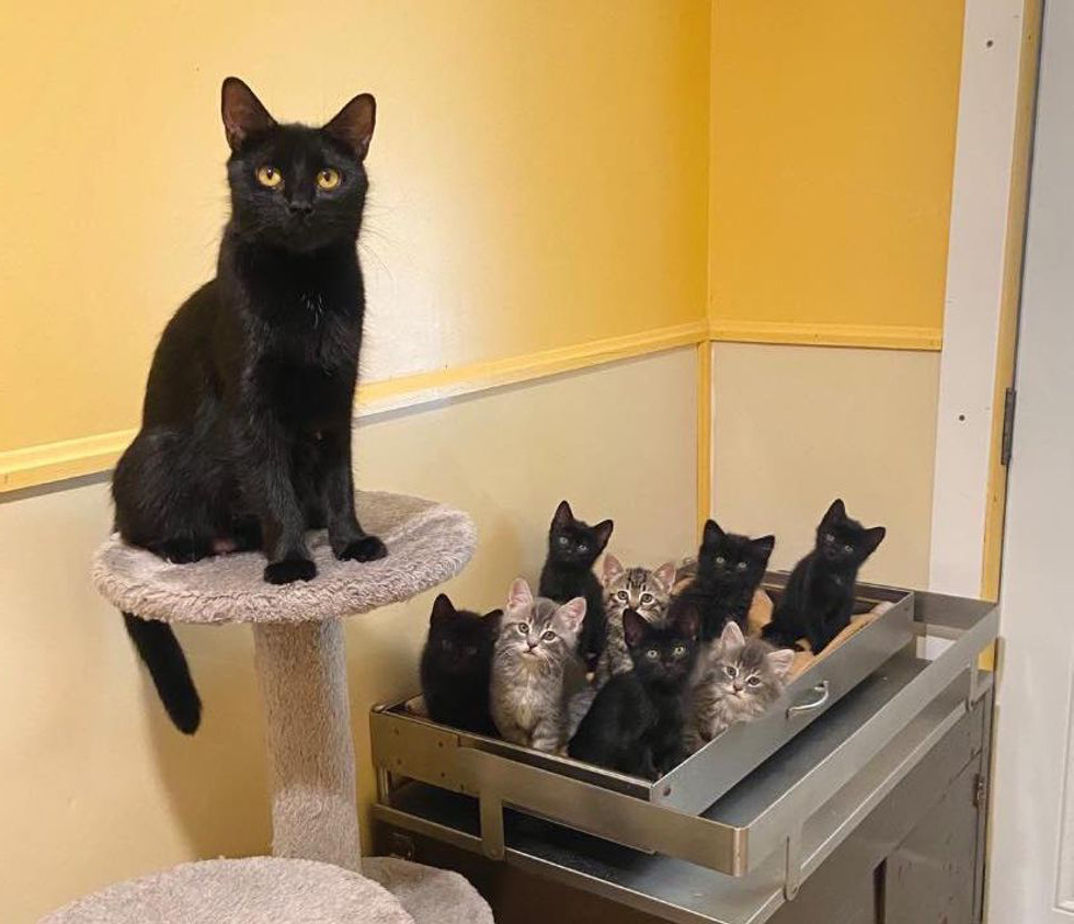 2024年03月19日去年時,一隻叫Queenie的黑貓被送到動物收容所。牠大約2歲,對人非常友好。工作人員發現,Queenie已經懷孕,而且馬上就要分娩了。不久之後,這隻貓咪生下8隻小貓,牠是一個很棒的媽媽,照顧寶寶無微不至,盡量滿足寶寶的所有需求。