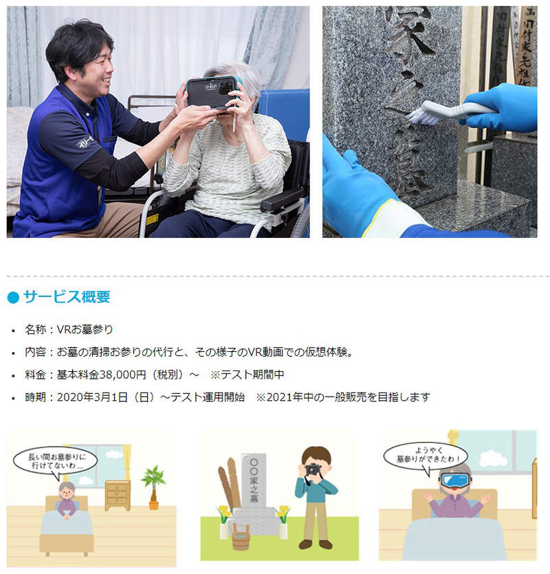 ▼這間公司的「VR代客掃墓」服務,本來是為行動不方便的老人家準備的。他們跟東京的一間養老院合作,從今年3月初開始為老人們服務。媒體報導後很快引發熱議,現在遇到COVID-19,除了老年人,年輕人也對這項服務很感興趣。