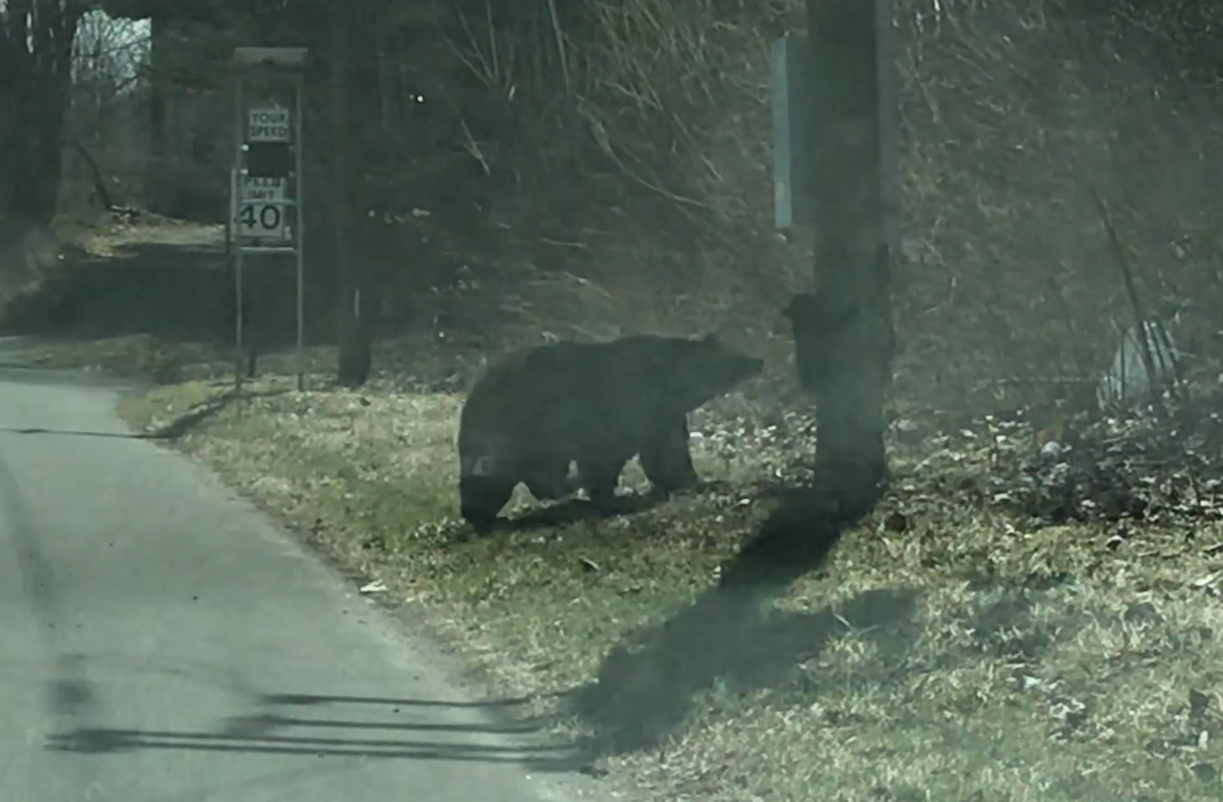 ▼熊媽媽先將一隻寶寶叼到馬路對面,另外2隻活潑的熊寶寶跟著跑了過去。最後一隻熊寶寶有點膽小,遲遲不敢往前走,還爬到了電線桿上。熊媽媽只能回去接牠,沒想到原本已經到了馬路對面的一隻熊寶寶竟然跟了回來。