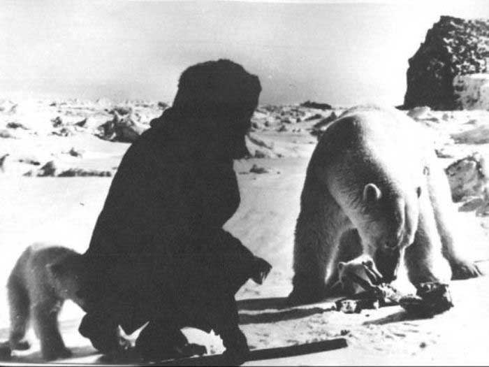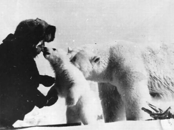 ▼大家全副武裝,卻沒有對北極熊做什麼不好的事。北極熊有尖銳的牙齒,也沒有威嚇人類。蘇聯人與北極熊分享食物,這溫馨的一幕讓人感受到了人類的美好一面。