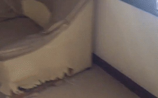 ▼養月月的另外一個特點就是回家隨時可能都有「驚喜」,你可能會發現沙發看起來怪怪的…