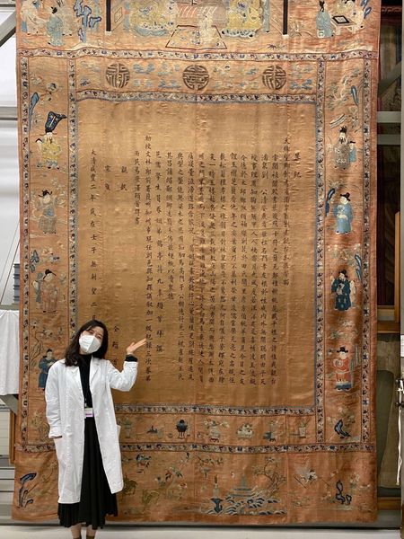 ▼賴盈伃表示,學習古物修護的過程非常辛苦,但透過她的聯絡協助,讓梵蒂岡博物館這幅以駢體書寫、原本難以辨識的掛毯作品得以被正確欣賞,她認為代表台灣的使命感是驅使她盡力表現的最大動力。這一過程中,她也與其他16位來自各國的實習生建立了深厚的情感,他們一起合拍的聖誕祝賀影片,成為了館內IG點擊率最高的影片。