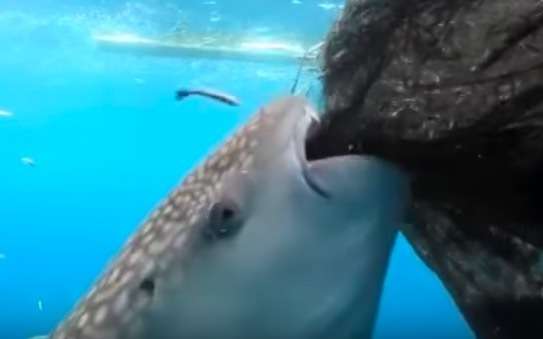 海中自助餐?鯨鯊機智發現「捕魚網有洞」立刻狂吸 「趁機呷飽飽」模樣超療癒