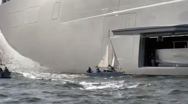 2022年04月06日最近西班牙的一個家庭搭乘小帆船出海遊玩,結果碰上了一艘價值3.84億英鎊的超級遊艇。小帆船上的家庭非常驚慌,超級遊艇上的船員們卻截然不同。他們無奈地看著小帆船不停剮蹭巨輪的船身,巨輪跟小帆船的大小對比太明顯,讓網友們忍不住笑出聲。
