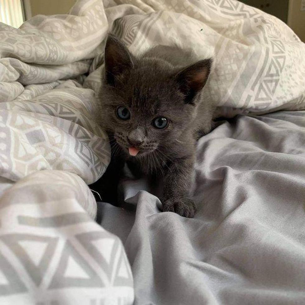 ▼Adam和Margaux開車載小貓回家的路上,牠一直喵喵叫個不停。雖然牠非常虛弱,甚至無法睜開眼睛,但叫聲響亮,生命力非常頑強。