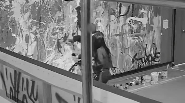 ▼從監視影片中可以看到,這對男女使用擺放在作品前、作為裝飾的筆刷在《Untitled》上塗顏料。當時附近沒有管理人員,大約30分鐘後,展方發現作品遭人塗鴉,透過監控錄影找到了這對正在附近購物的男女,並報警。
