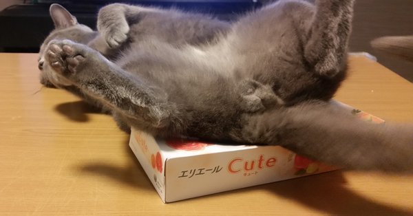 ▼這隻貓咪超喜歡仰躺休息,走到哪裡躺到哪裡,兩顆灰色小蛋蛋也大方露出來,非常顯眼。