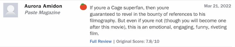 ▼《Past Magzine》的記者Aurora Amidon則稱讚說:「如果你是尼可拉斯凱吉的超級粉絲,那《超吉任務》肯定會讓你滿意,而如果你不是,你會在看完這部電影後愛上他。」