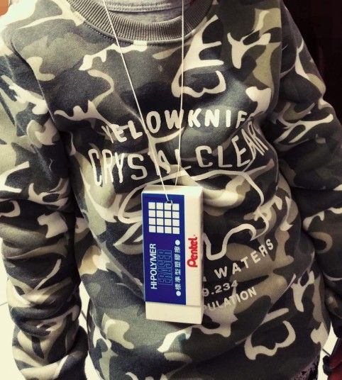 現在這位小朋友上學都必須帶著「超大顆」橡皮擦,我想他應該再也不會遺失文具用品了吧!