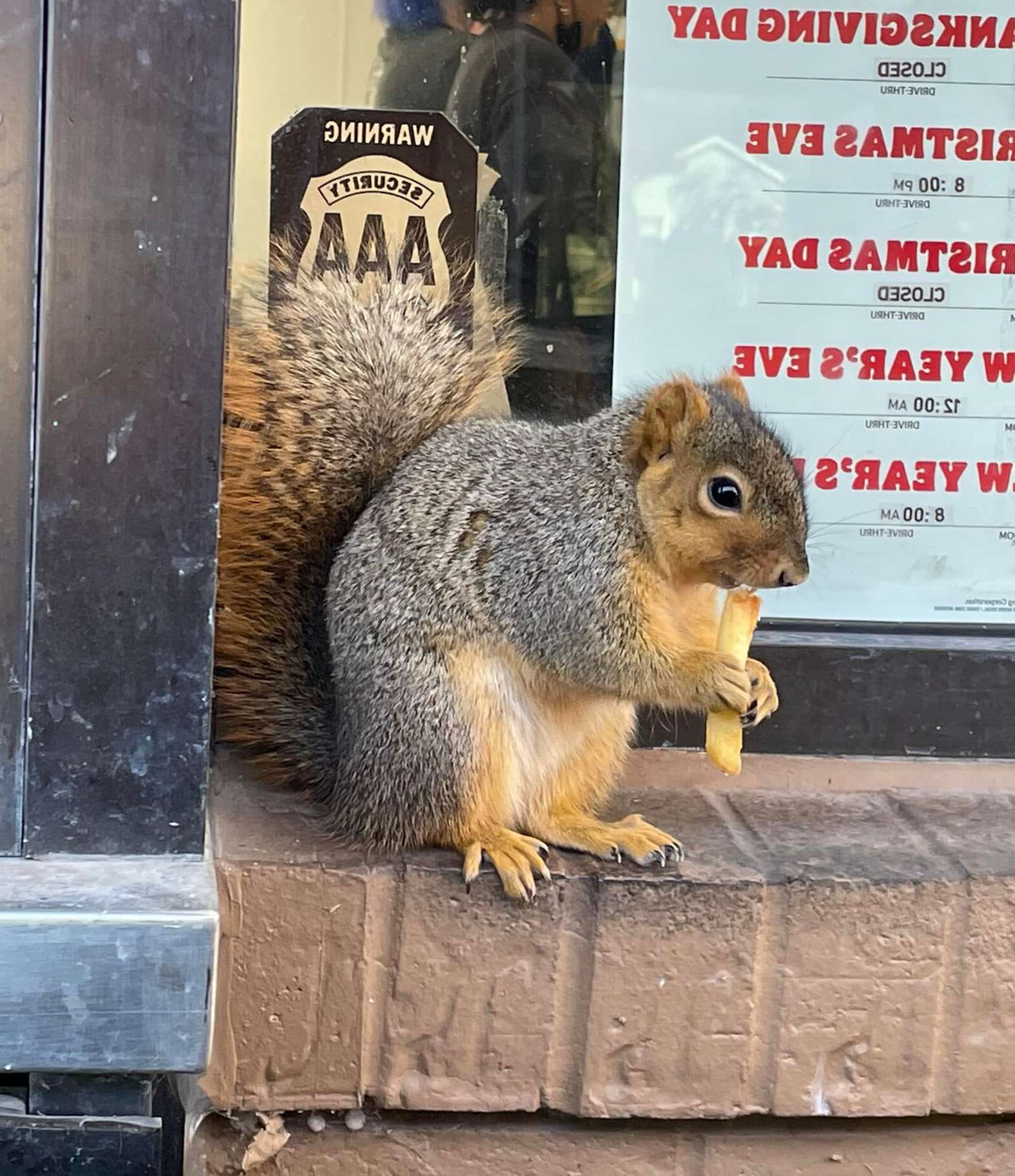 得來速驚見「好肥美松鼠」耐心等待! 店員送上香噴噴薯條...牠滿足離開