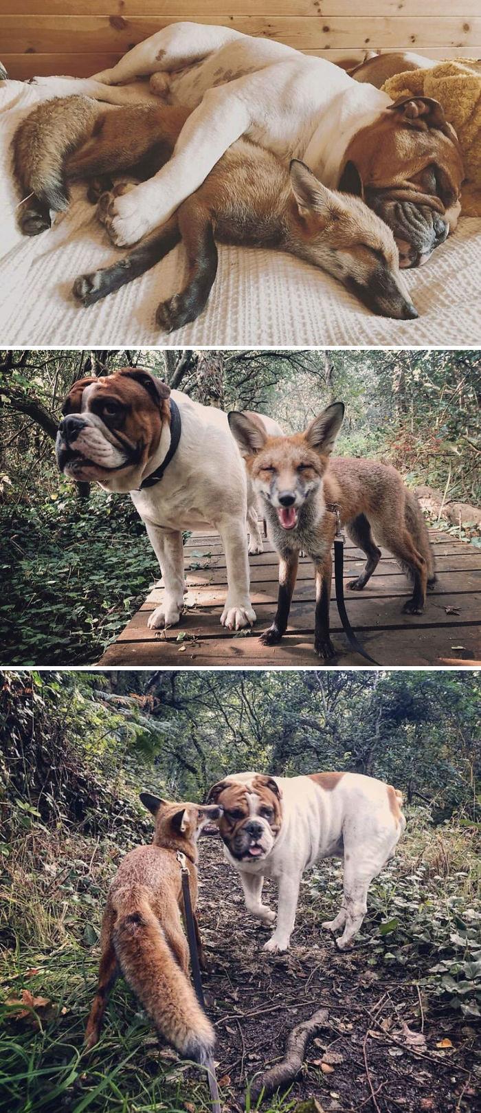▼24.狐狸和鬥牛犬每天都形影不離。
