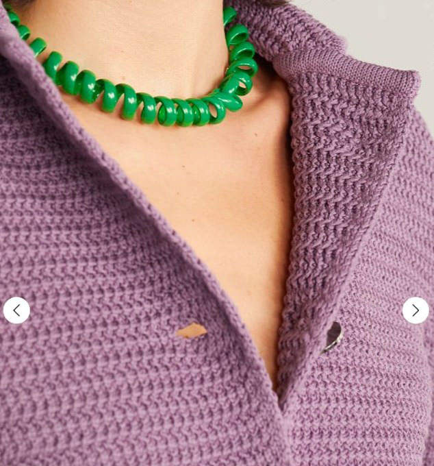 ▼項鍊的顏色多種多樣,有薰衣草色、草綠色、水藍色、紅色跟芥末黃等等,顏色多種多樣,而且都非常大膽。不管你平時的穿衣風格是什麼樣,都能搭上一條適合的電話線捲捲項鍊。