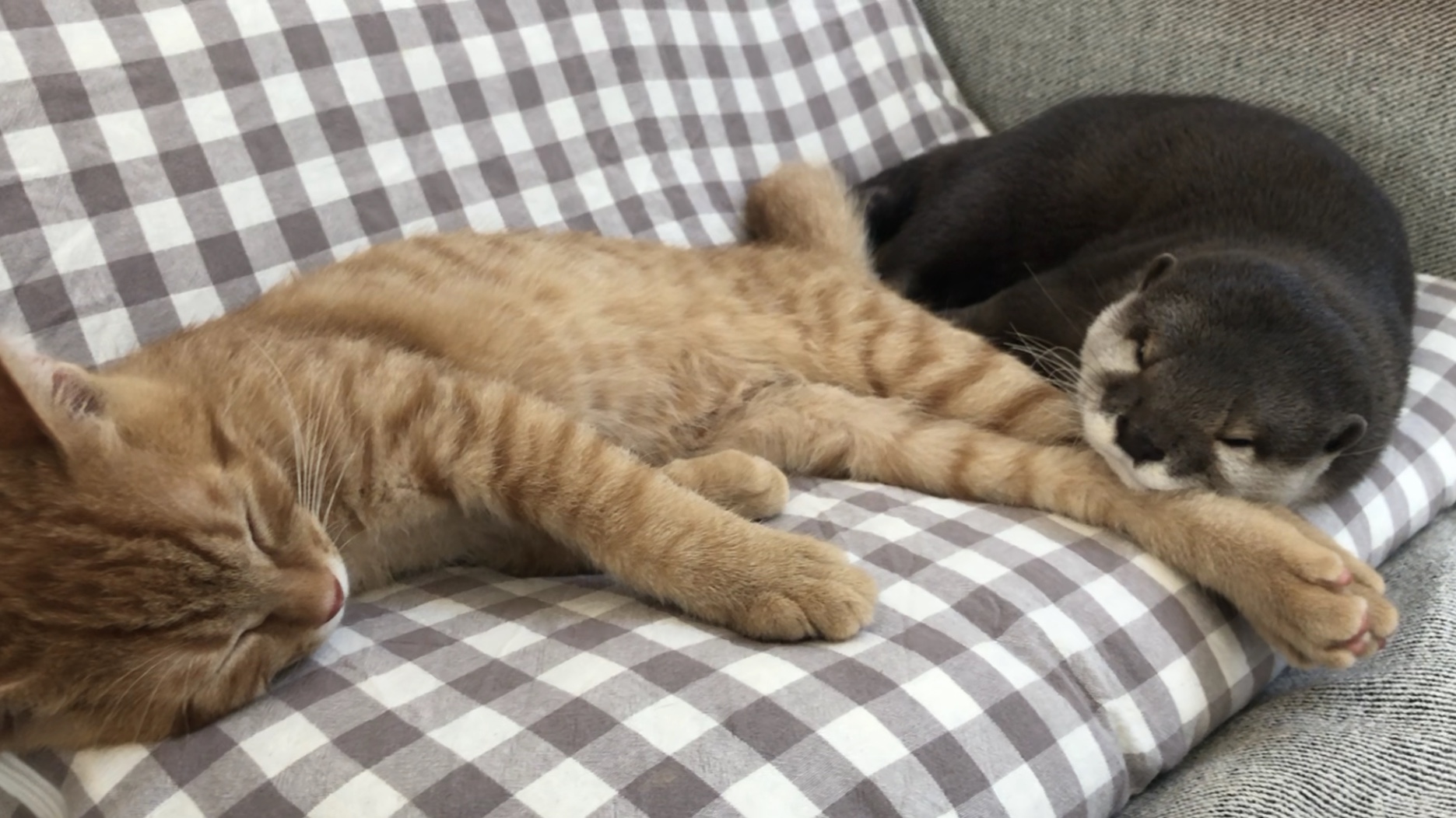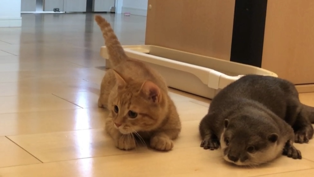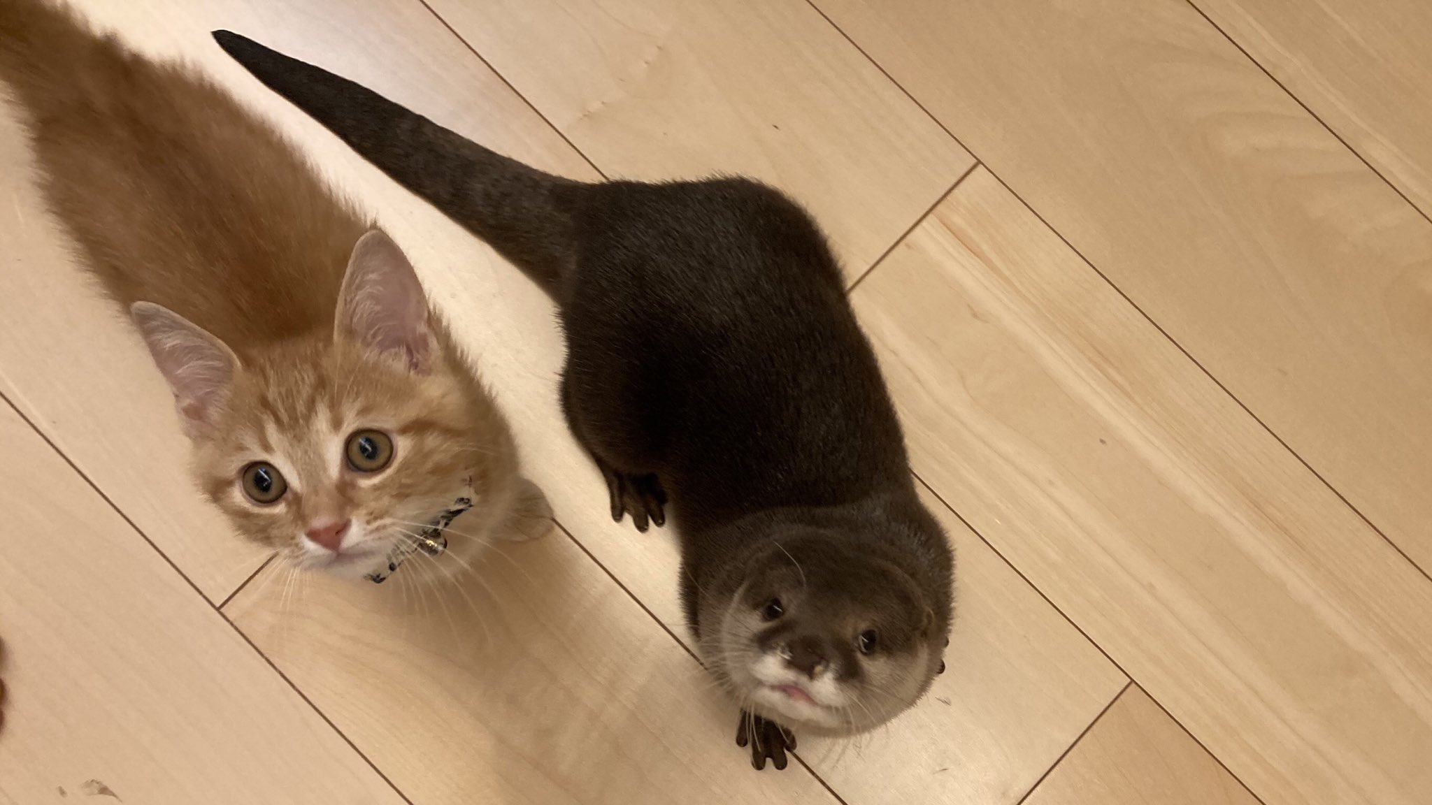 2024年02月28日貓咪的魅力勢不可擋!日本推主@kawauso_sakura家中有一隻叫「櫻花」(さくら)的小水獺,櫻花活潑可愛,很會賣萌,在網路上吸引了不少粉絲。最近推主又收編了一隻叫「麻糬」(もち)的小橘貓,櫻花和麻糬相處得很好,這本來是好事,但推主發現,櫻花似乎漸漸被麻糬同化了…